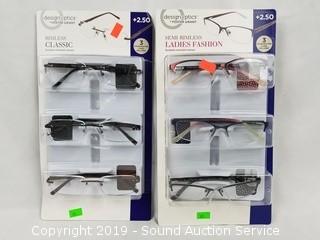 Lot #0188: 6 Pairs Design Optics +2.5 Reading Glasses