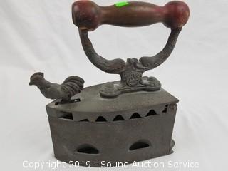 Lot #0003: Antique Cast Iron Coal Burning Rooster Iron