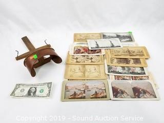 Lot #0117: Antique Stereoscope Viewer w/19 Viewing Cards
