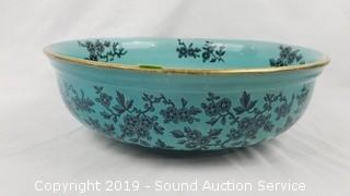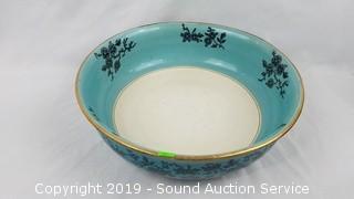 Item Description: Gold trim, some scuffs in the finish and crazing. 13" diameter basin.