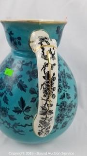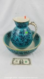 Lot #0040: Beautiful Pompadour DB&C Teal Pitcher & Basin
