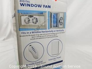 Item Description: Fits in windows horizontally or vertically. Reversible blades. 3 speeds. Remote control. Works, like new.