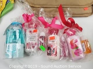Item Description: Also comes with shower gel and body lotion set. Includes B. Macowsky leather hand bag and others.