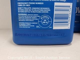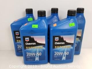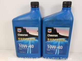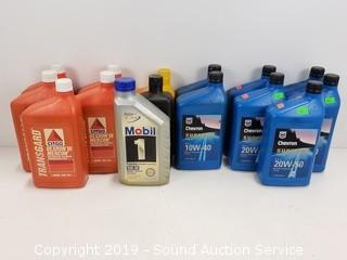 Item Description: 5 Quarts Chevron Supreme 20W-15 Motor Oil, 2 Quarts Chevron Supreme 10W-40 Motor Oil, 6 Quarts of Transmission Fluid, 1 Quart 5W-30 Motor Oil, and 1 Quarts 10W-30 Motor Oil. Some are expired.