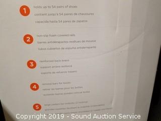 Item Description: Holds up to 54 pairs of shoes. Unassembled in original packaging. Looks complete.