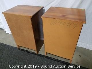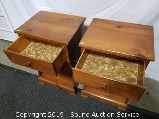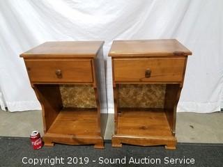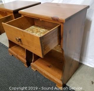 Lot #0076: Pair of 2-Tier Single Drawer Pine Night Stands