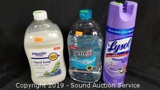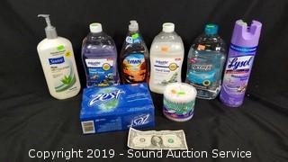 Item Description: Includes Lysol disinfectant spray, (2) 56oz bottles of hand soap, 56oz hand sanitizer, 8 bars of Zest bar soap, 21.6oz Dawn dish soap, cotton swabs and 32oz Suave aloe body lotion.