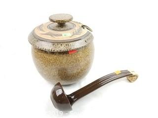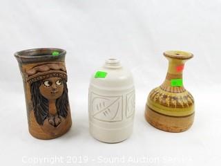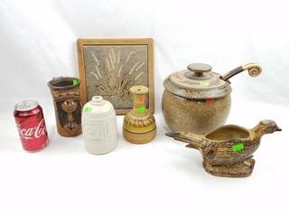 Lot #0107: Pottery Soup Tureen, Vase, Trivet, Mug & Planter