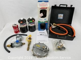 Item Description: Includes (2) 16.4oz propane bottles, Harbor Freight propane torch with 3 burners, propane hose, various attachments and more.