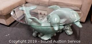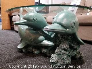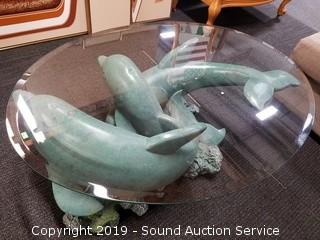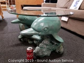 Lot #0064: Unique Ceramic Dolphin Base Coffee Table