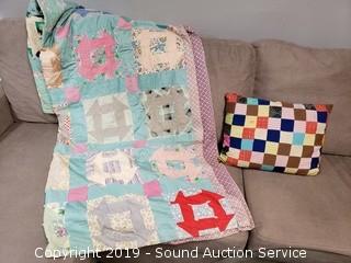 Lot #0363: Vtg. Hand Stitched Quilt & Quilted Pillow