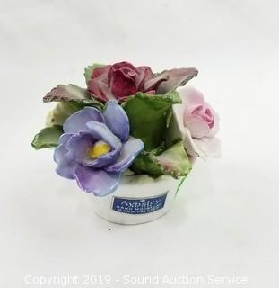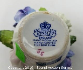 Item Description: Hummel's are Bee in V mark TMK-2 1950's Mold 81 2/0 School Girl, & 94 3/0 Girl with basket & boy. Royal Doulton & Lancaster character mugs, Aynsley floral arrangement & Rimes bud vase.