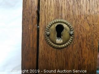 Item Description: Skeleton key lock, no key, locked shut. 15" W x 25" T x 6" D.