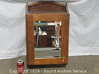 Lot #0127: Vtg. Oak Beveled Mirror Medicine Cabinet