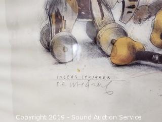 Item Description: Some Rippling / Warping in the prints. Framed with glass. 24" x 33". One looks signed. Refer to photos.