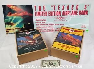 Lot #0184: 2 Wings of Texaco Die Cast Airplane Banks & Banner