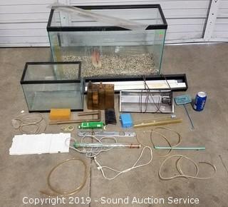 Lot #0326: 28 Gallon Glass Fish Tank & Accessories