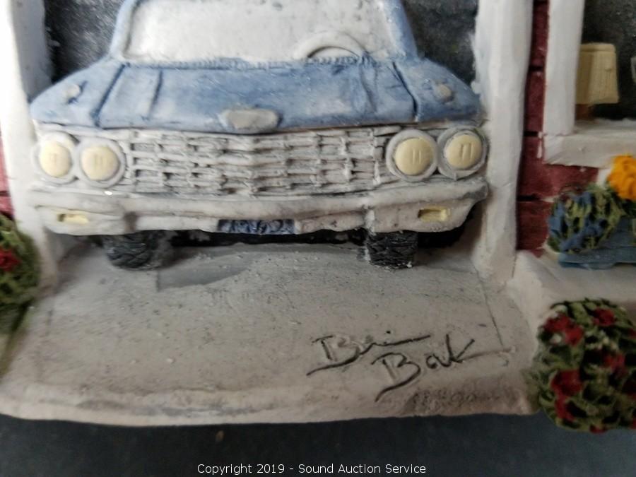 Vtg. Bar, Lane Cedar Chest, Vtg. Rocker, Patio Set, Vtg. Hutch, Concrete Bird Bath, Concrete Yard Art Deer, Aluminum Ladders, Utility Cabinet, Yard Tools, Vtg. Stained Glass Shades, Art Glass Paperweights, Vtg. Cross Cut Saws, Die Cast Coin Banks, Antique Scale, Tools, Vtg. Glassware & Pottery, Wood Carvings, Silver Collectors spoons, compotes, dishes, Flatware Sets, Signs, Artwork, Brian Baker's Deja Vu Ceramic Cottages, Unique Vtg. Swag Lamps & More.