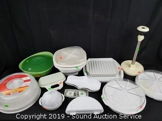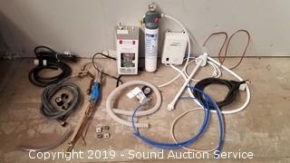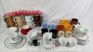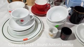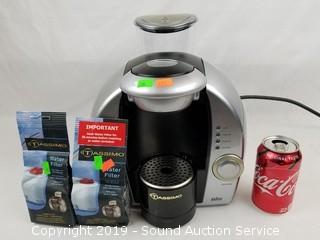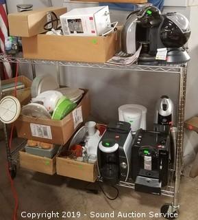 Item Description: Tassimo Hot Beverage Machine w/Water Filters, Used Water Filter Set For Sink Faucet, Tassimo Hot Beverage Machine w/Manual, DeLonghi Nescafe Dolce Gusto Coffee Machine, Soda Club Edition 1 Soda Machine, Coffee Maker, Espresso Machine & Travel Thermos, ESI E-1 H20 for Espresso Systems, Tassimo Hot Beverage Machine, Nordic Ware Microwave Cookware, Large Lot of Coffee Cups & Saucers.