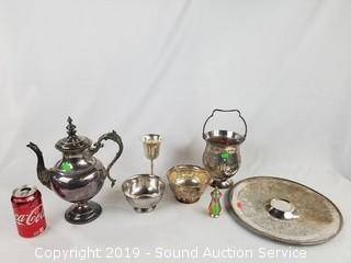 Vtg. Bar, Lane Cedar Chest, Vtg. Rocker, Patio Set, Vtg. Hutch, Concrete Bird Bath, Concrete Yard Art Deer, Aluminum Ladders, Utility Cabinet, Yard Tools, Vtg. Stained Glass Shades, Art Glass Paperweights, Vtg. Cross Cut Saws, Die Cast Coin Banks, Antique Scale, Tools, Vtg. Glassware & Pottery, Wood Carvings, Silver Collectors spoons, compotes, dishes, Flatware Sets, Signs, Artwork, Brian Baker's Deja Vu Ceramic Cottages, Unique Vtg. Swag Lamps & More.