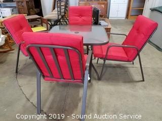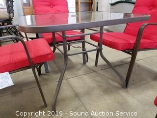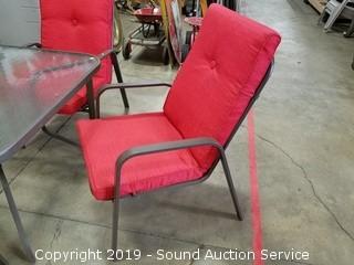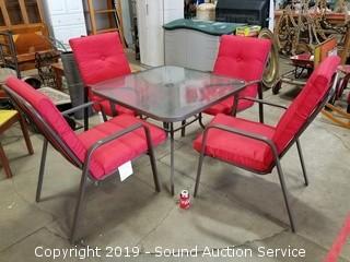 Lot #0007: Glass Top Patio Table 2/4 Padded Chairs