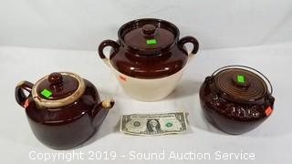 Lot #0335: Pottery Bean Pots & McCoy Teapot