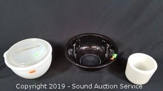 Vtg. Bar, Lane Cedar Chest, Vtg. Rocker, Patio Set, Vtg. Hutch, Concrete Bird Bath, Concrete Yard Art Deer, Aluminum Ladders, Utility Cabinet, Yard Tools, Vtg. Stained Glass Shades, Art Glass Paperweights, Vtg. Cross Cut Saws, Die Cast Coin Banks, Antique Scale, Tools, Vtg. Glassware & Pottery, Wood Carvings, Silver Collectors spoons, compotes, dishes, Flatware Sets, Signs, Artwork, Brian Baker's Deja Vu Ceramic Cottages, Unique Vtg. Swag Lamps & More.