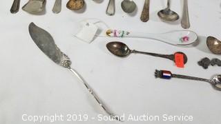 Vtg. Bar, Lane Cedar Chest, Vtg. Rocker, Patio Set, Vtg. Hutch, Concrete Bird Bath, Concrete Yard Art Deer, Aluminum Ladders, Utility Cabinet, Yard Tools, Vtg. Stained Glass Shades, Art Glass Paperweights, Vtg. Cross Cut Saws, Die Cast Coin Banks, Antique Scale, Tools, Vtg. Glassware & Pottery, Wood Carvings, Silver Collectors spoons, compotes, dishes, Flatware Sets, Signs, Artwork, Brian Baker's Deja Vu Ceramic Cottages, Unique Vtg. Swag Lamps & More.