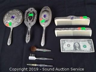 Lot #0263: Vtg. Silverplate Vanity Sets