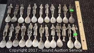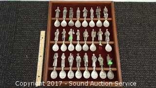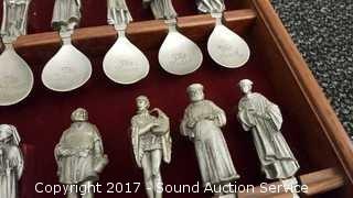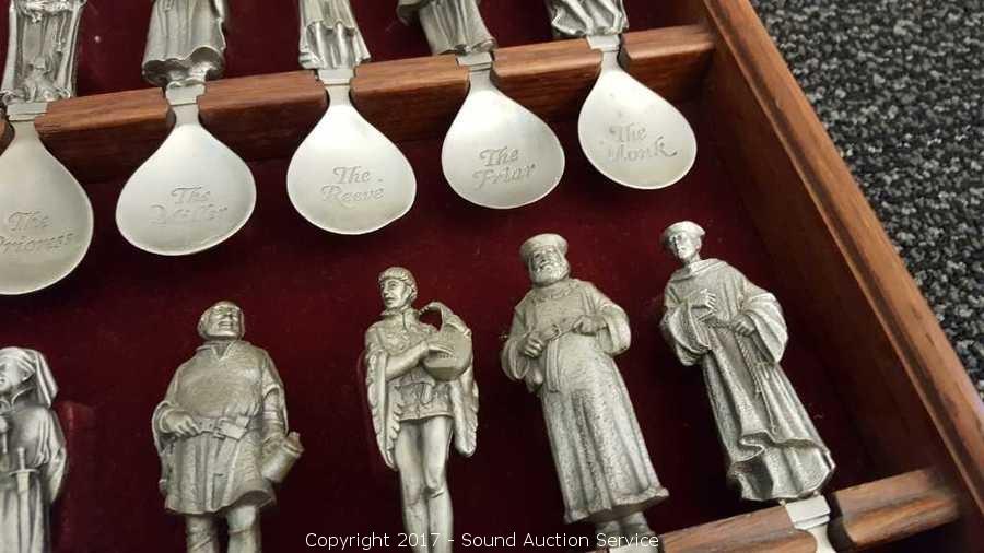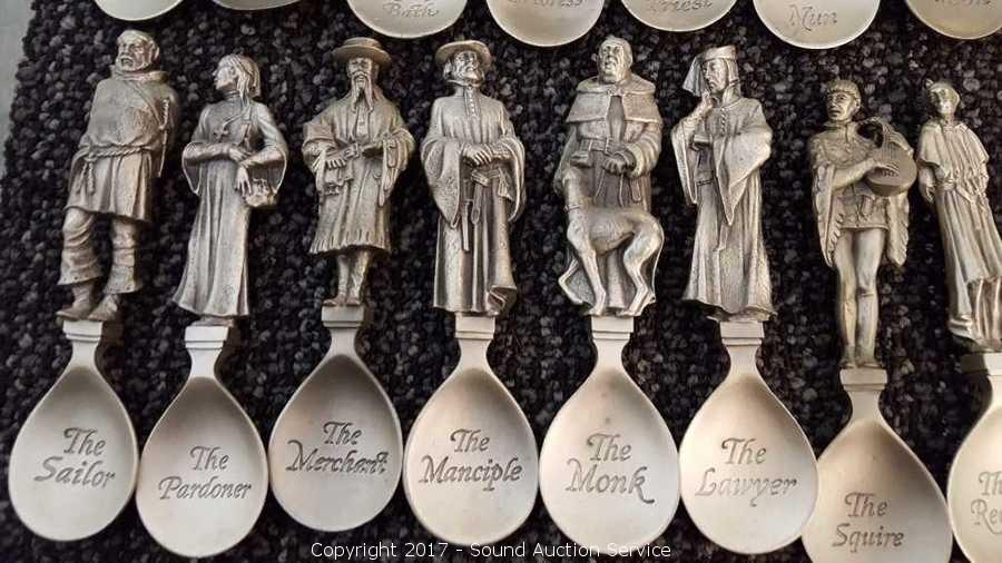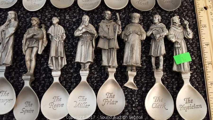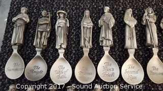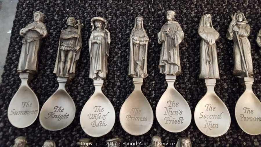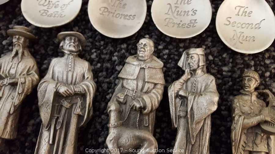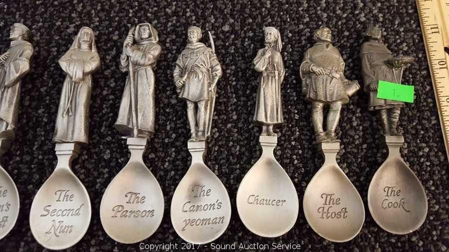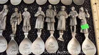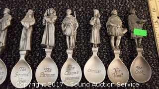 Lot #0001: (24) The Canterbury Tales Pewter Spoons w/Display