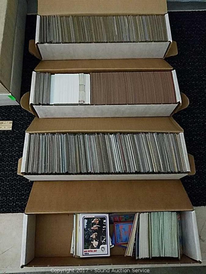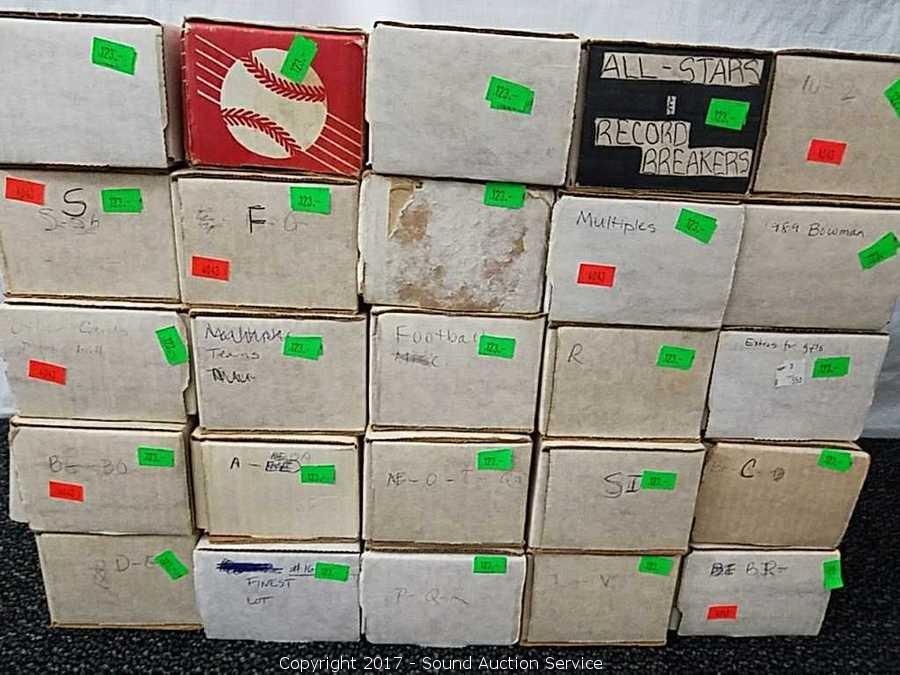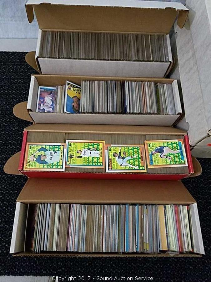 Includes some football and basketball cards, mostly baseball. Almost all are in protective sleeves. Appears to have been alphabetized at one point in time.