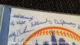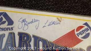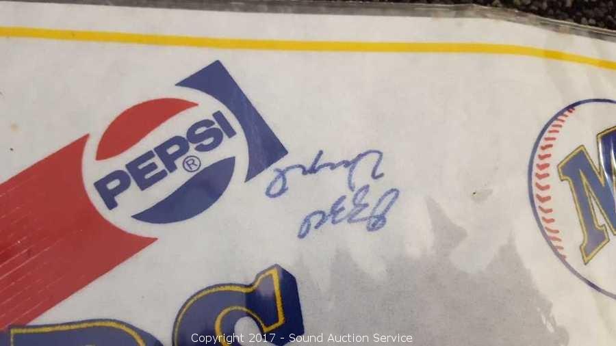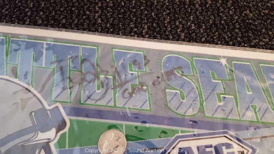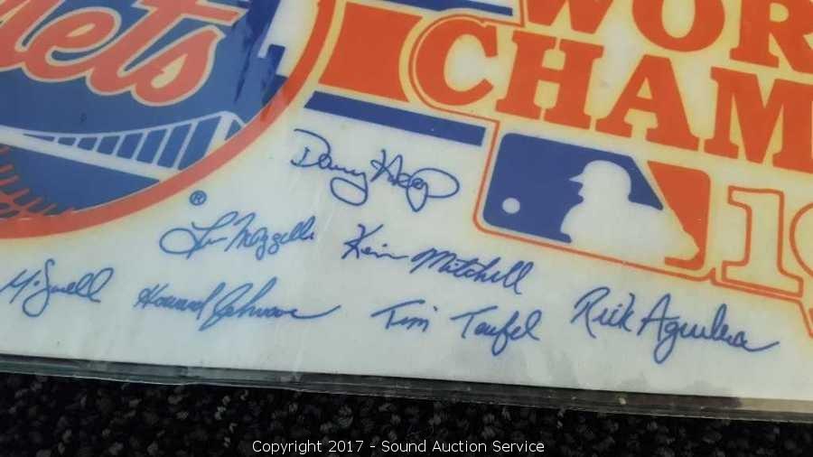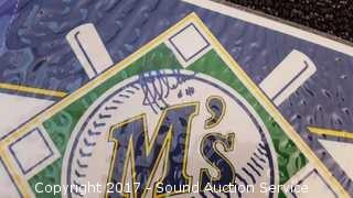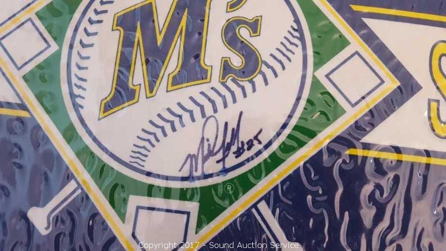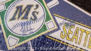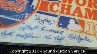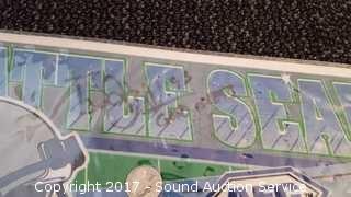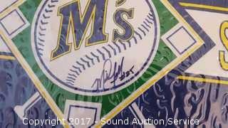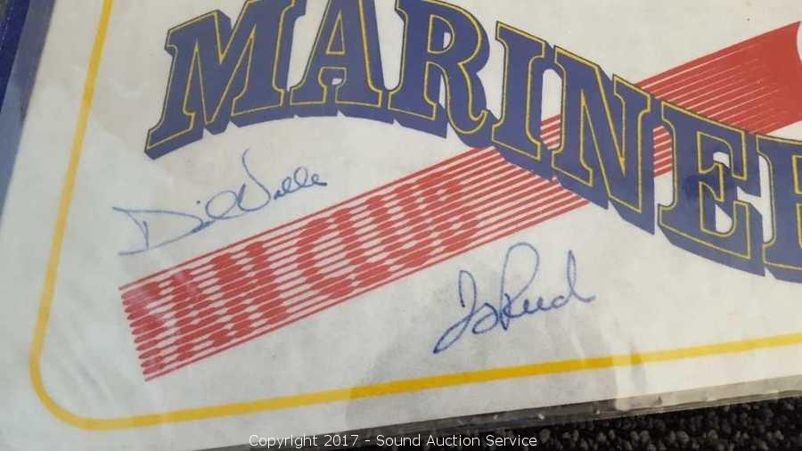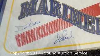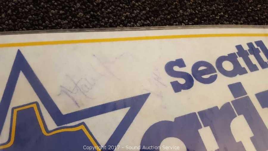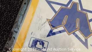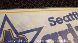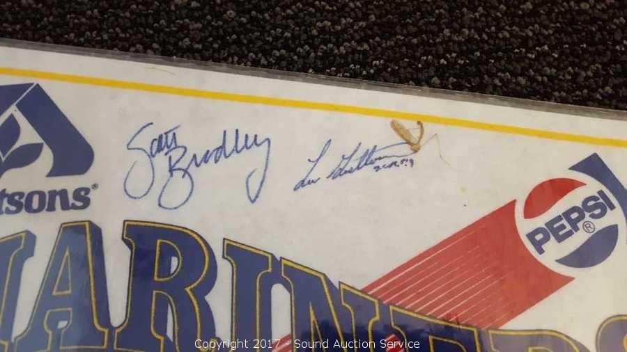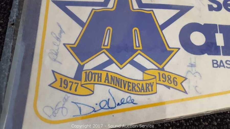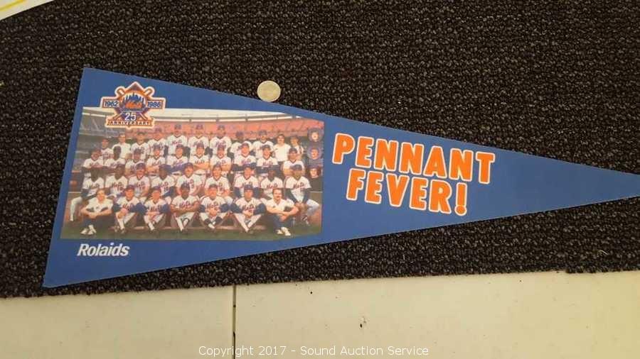 Includes: several signed Mariners pennants, METS World Champion signed pennant, Seattle Supersonics World Champion pennant, and Seattle Seahawks signed pennant.