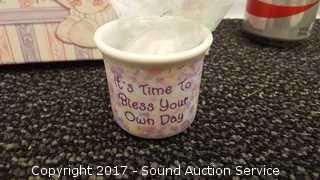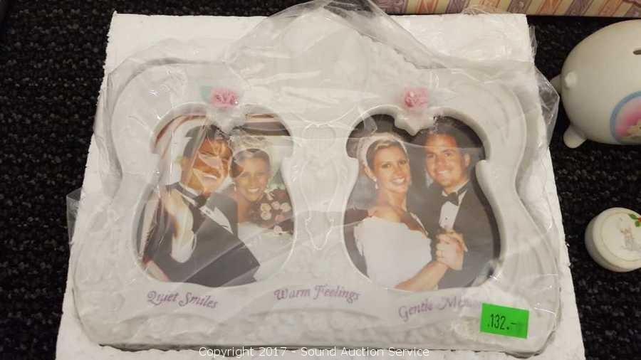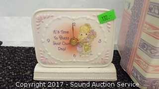 Includes: Box, clock, picture frame NIB, tiny trinket dish, candle holder, piggy bank and more.