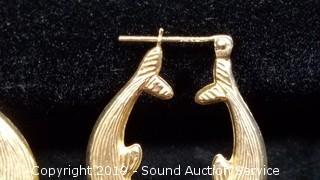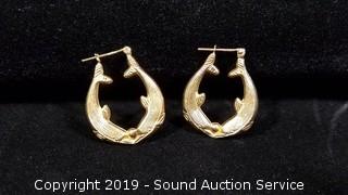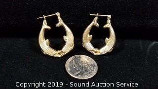 Lot #0105: 14K Gold Fish Hoop Earrings