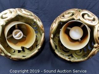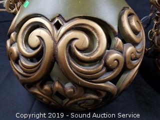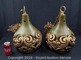 Lot #0200: 2 Vtg. Chalk Hanging Swag Lamps
