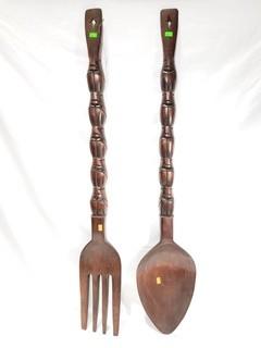 Lot #0275: Lg. Carved Wood Spoon & Fork Wall Decor