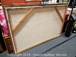Item Description: Frame has some wear, some spots on the canvas. Approx. 42" x 62".