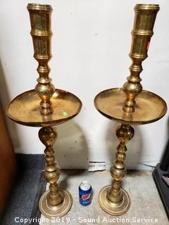 Lot #0286: Pair of 35" Tall Brass Candle Holders