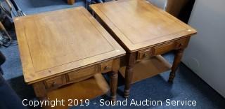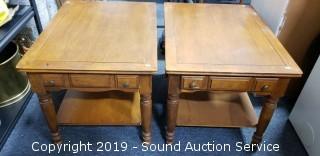 Lot #0008: Pair of Maple Single Drawer Side Tables