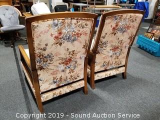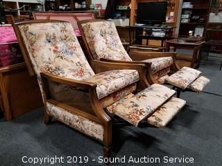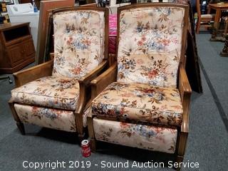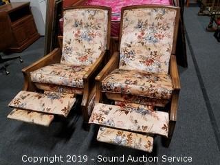 Lot #0026: Pair of Vtg. Floral Print Push Back Recliners