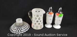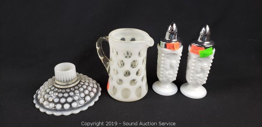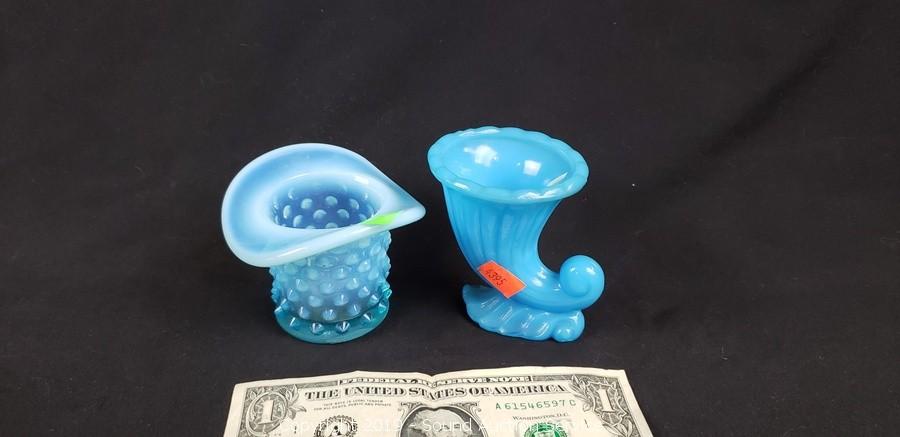 Lot #0301: 13pc White & Blue Art & Milk Glassware