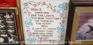 Item Description: Also includes Lake Trout Print & embroidered religious pray needlepoint quote. Largest is 31" x 19".