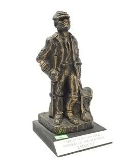 Item Description: The buffalo soldier is by the Tuller Trophy Co. The Thinker Sculpture is chalk, has a couple chips. 9" tall.