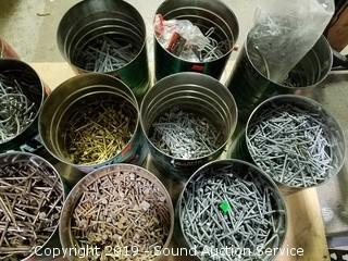 Lot #0363: 14 Coffee Cans Loaded w/Nails & Clips