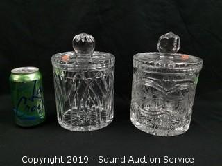 Item Description: One is Made in Poland. Both are full lead crystal. Approx. 8" H, 5" diameter.