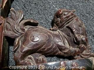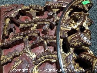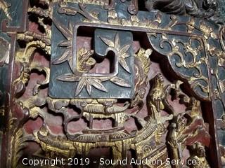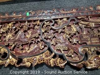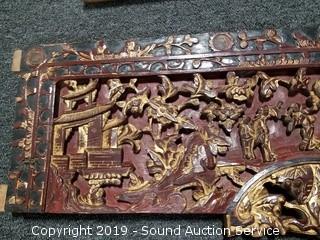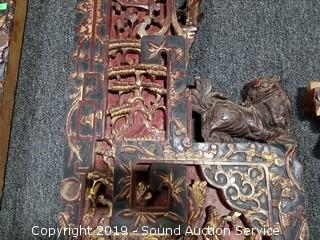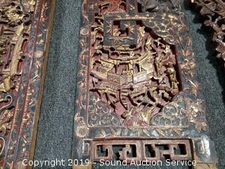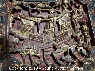 Lot #0373: 3 Hand Carved & Hewn Oriental Teak? Ornate Panels