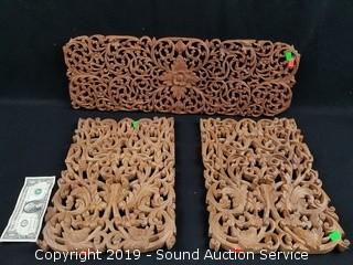 Lot #0395: 3 Incredibly Detailed Ornate Carved Wood Panels