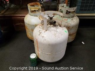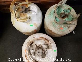 Item Description: 17-18lbs. One has some propane, other 2 are empty. Dates are 11-93E, 05-02, and 02-02E.