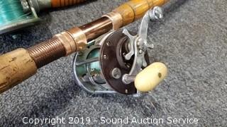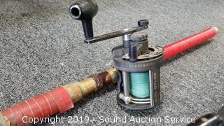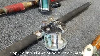 Item Description: Mini-Ferrules 9'ft 2pc Fiberglas Rod with Eagle Claw GTL25 Reel. 8-1/2'ft Master Graphite Rod with Penn 209 Level Wind Reel. Eagle Claw Denco Super III 7-1/2'ft Rod with Penn Peer No.209 Reel. 7-1/2'ft Fiberglas Rod with Ocean City 113 Reel and a 52" long fishing net with 15" diameter opening.