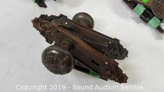 Lot #0391: 4 Ornate Vtg. Bronze Finish Door Assemblies